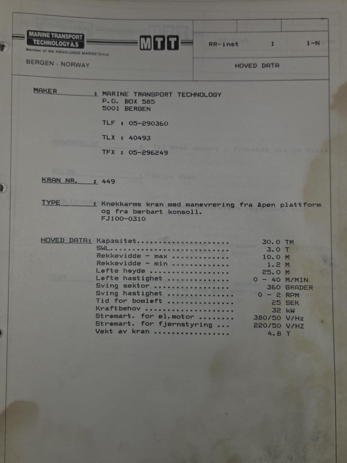 HAEGGLUNDS MTT Knuckle Boom Crane 3T @ 10 mtr for SALE