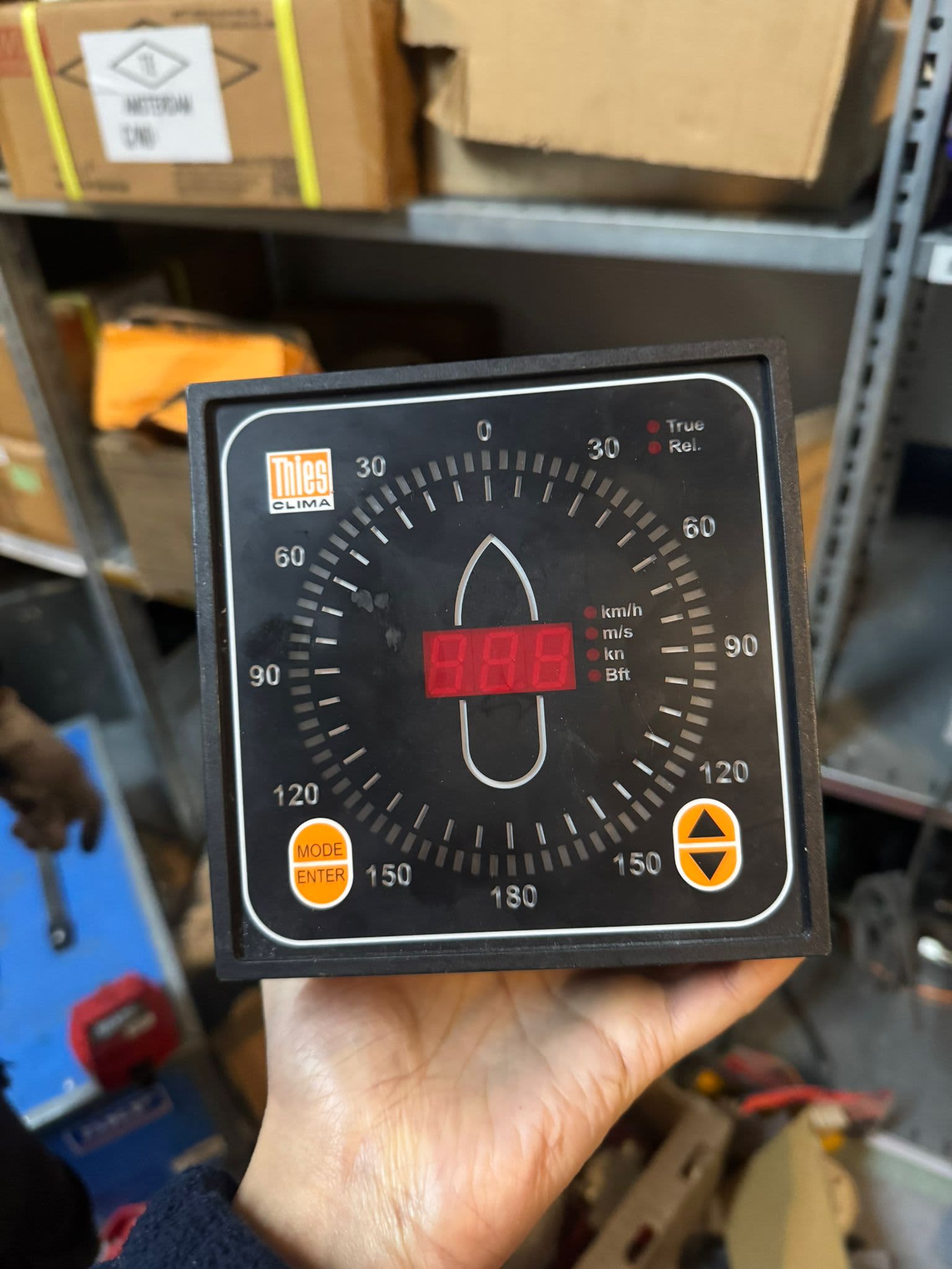Professionele Thies Clima windsnelheid- en windrichting display voor industriële en meteorologische toepassingen.