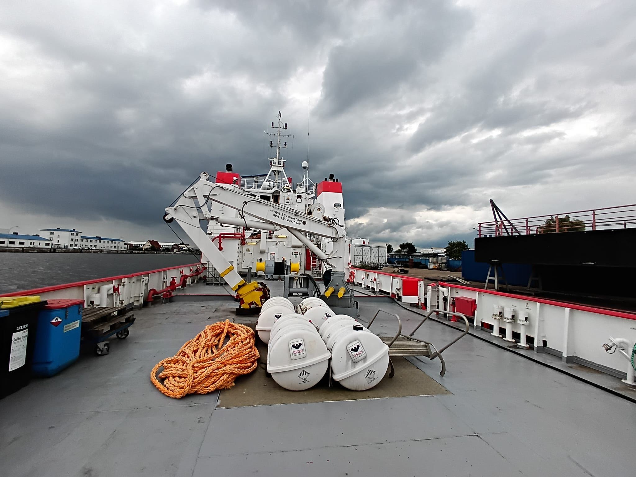 The vessel has some good features for the use in different sectors, like double propulsions, wheelhouse in front, large open aft deck space, deck crane in the middle of the deck etc etc.