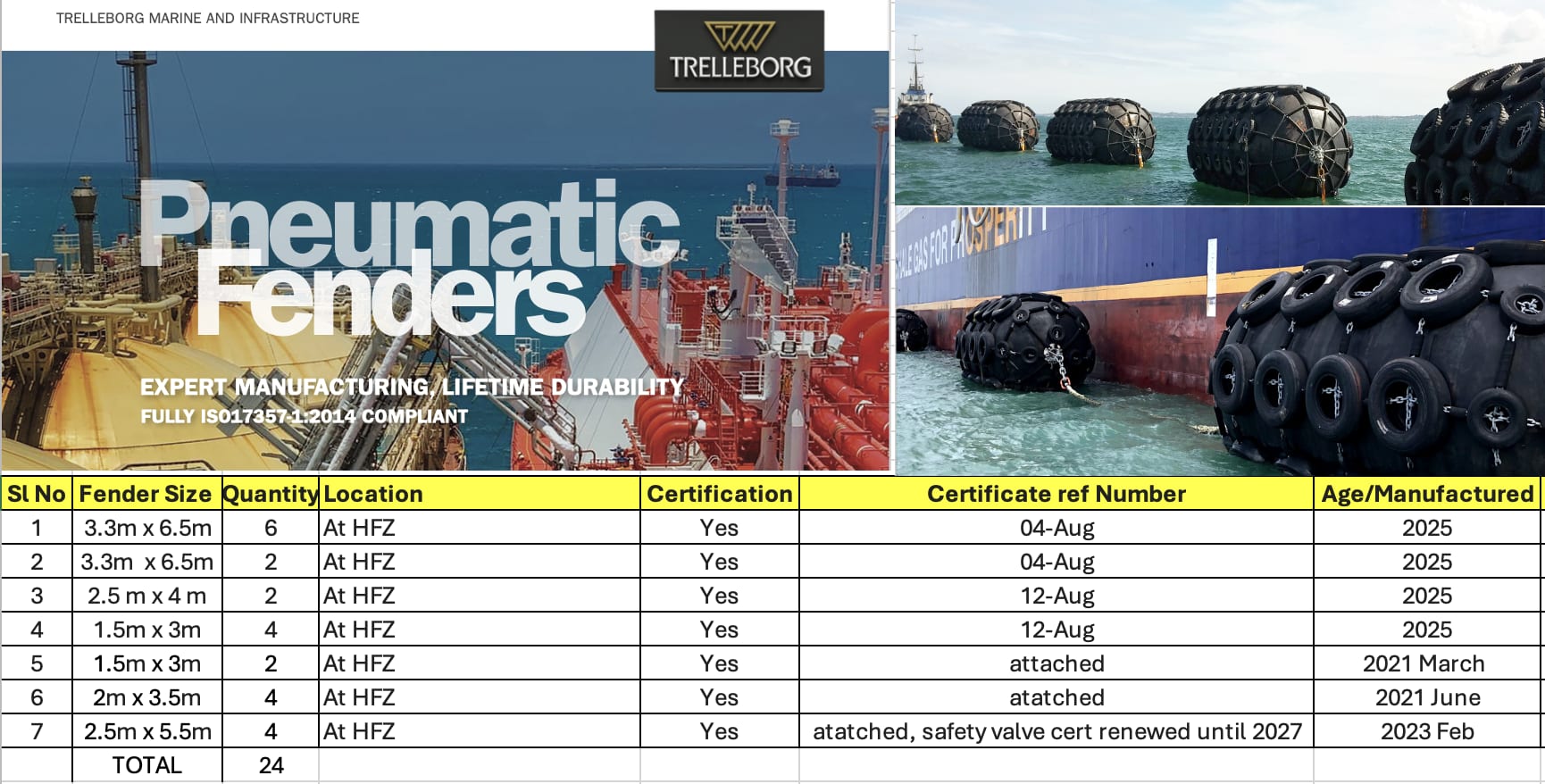 If you are looking for ready to use fenders, we have some as below.Please find the list of Fenders available in UAE.Certificates & Brochure available on request