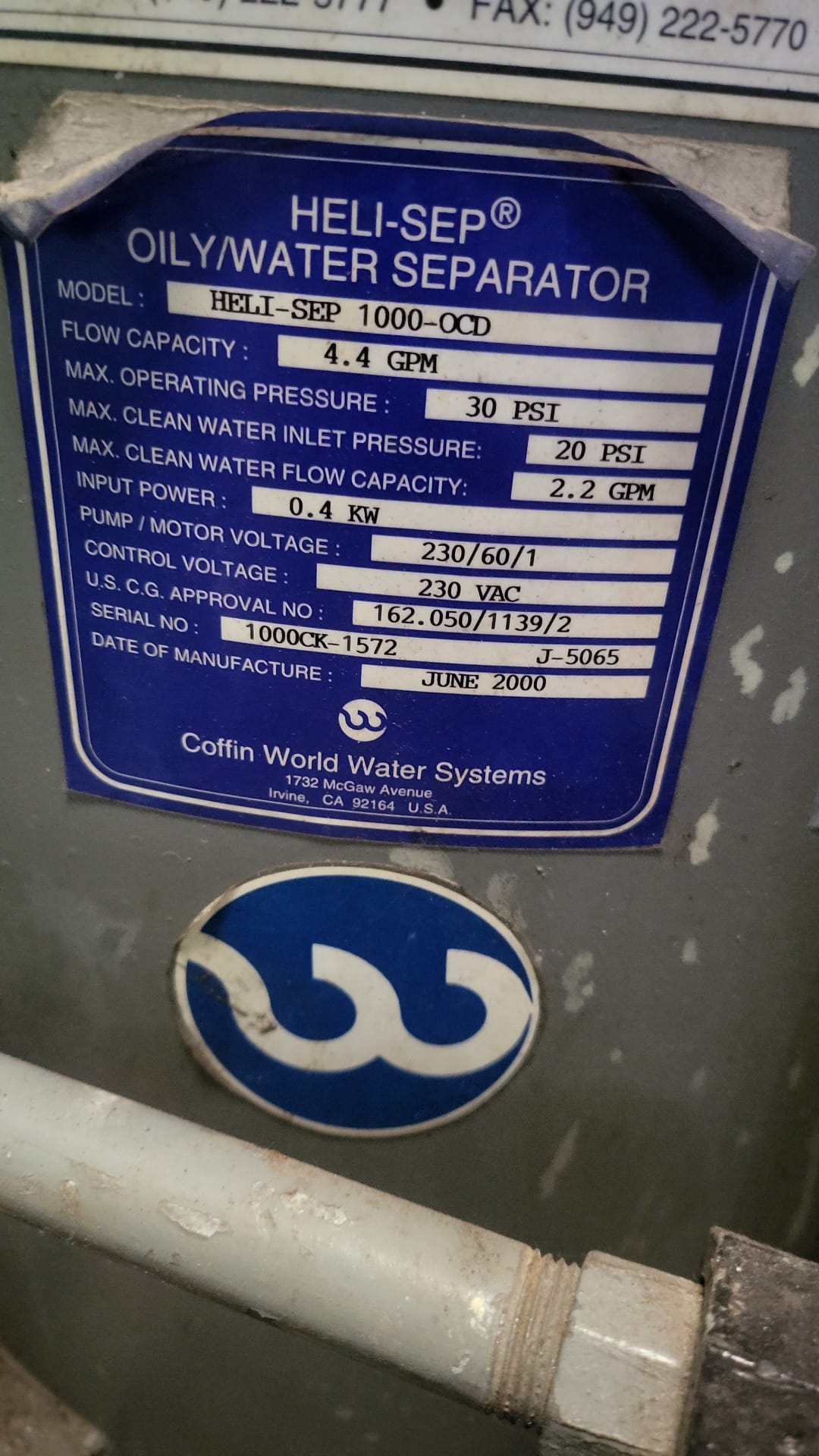 220V Bilge water separator, Heli Sep